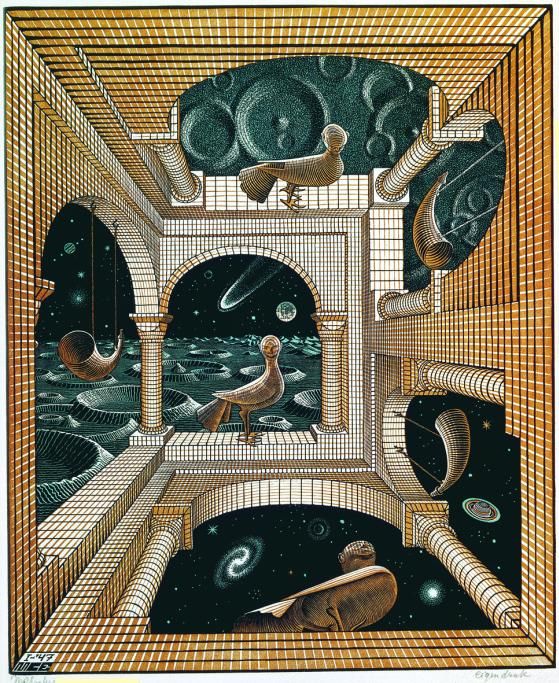 Le opere in esposizione rivelano pienamente l’originalità di Escher, capace di unire scienza, natura, rigore analitico e capacità contemplativa in creazioni volte a suscitare profondo stupore nell’osservatore, posto di fronte a universi sorprendenti e misteriosi, di cui non sospettava l’esistenza. La sezione finale della mostra si concentra sul potere di Escher di influenzare l’arte e la grafica fino ai giorni nostri, dalle copertine degli album, ai fumetti, ai biglietti d’auguri.