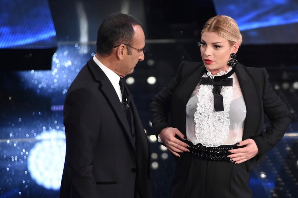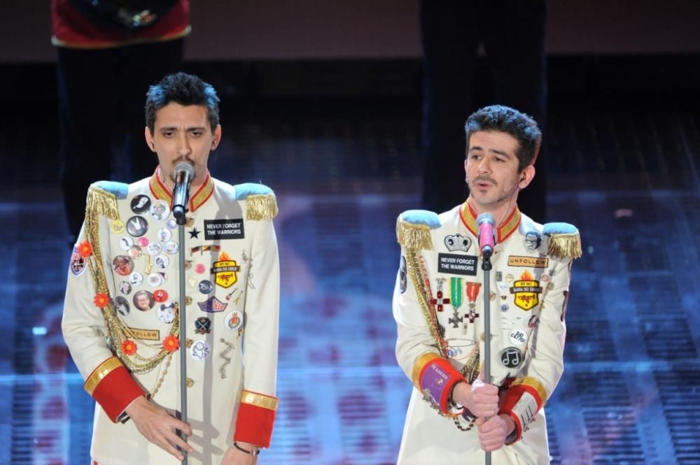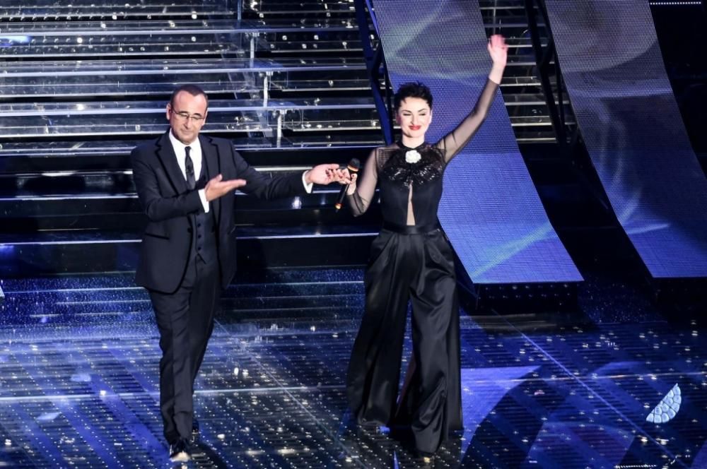 Una splendida Charlize Theron incanta il pubblico dell’Ariston. Tra gli altri ospiti, Conchita Wurst, Luca Argentero, Claudio Amendola, Pino Donaggio, il ciclista Vincenzo Nibali, Javier Zanetti, Marlon Roudette, Joe Bastianich. Tra le Nuove Proposte, superano la gara Enrico Nigiotti e Kutso. Rischio eliminazione per Anna Tatangelo, Bianca Atzei, Moreno, Biggio e Mandelli (foto Corbis)