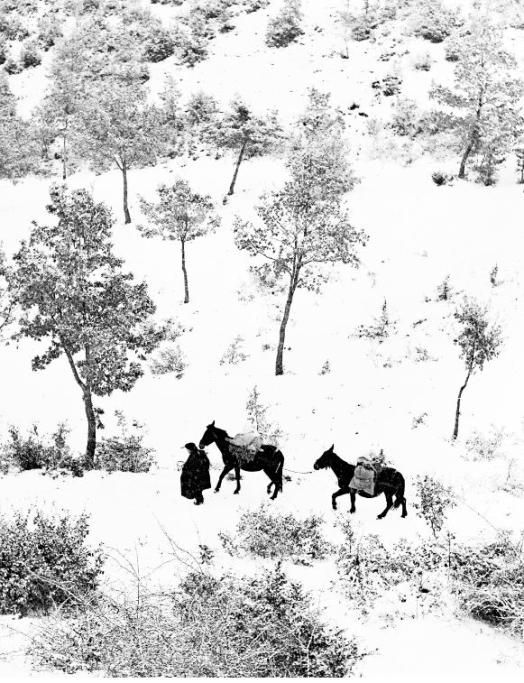 L’obiettivo di Roiter coglie vicoli in cui si incontrano volti di bambini sorpresi a giocare con le ceste di vimini o intenti a portare dai campi il peso di una sacca piena di frutta e verdura, paesaggi innevati solcati dal passo lento dei muli o dal segno commovente di piccole croci sbilenche in ferro battuto, borghi deserti perché di giorno tutti gli abitanti sono impegnati a coltivare la terra e accudire gli animali.