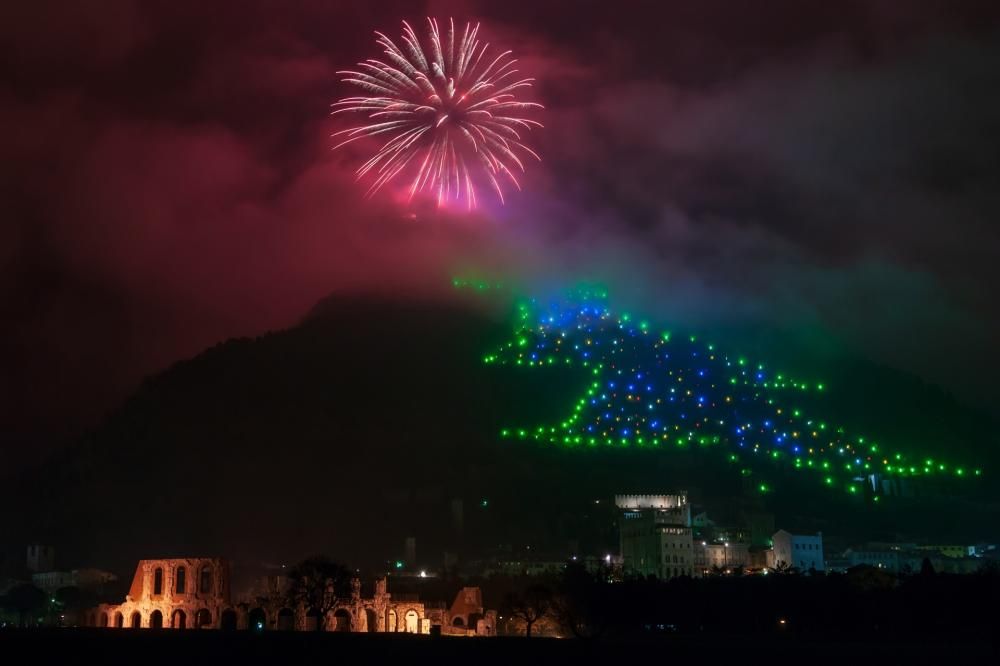 Ma veniamo al ‘nostro’: quello eugubino è l’albero di Natale più grande del mondo! Viene realizzato ogni anno sulle pendici del Monte Ingino, proprio sopra il comune umbro. È composto da più di 700 sorgenti luminose, alto 750 metri e occupa uno spazio di 130mila mq. Un motivo di vanto italiano.