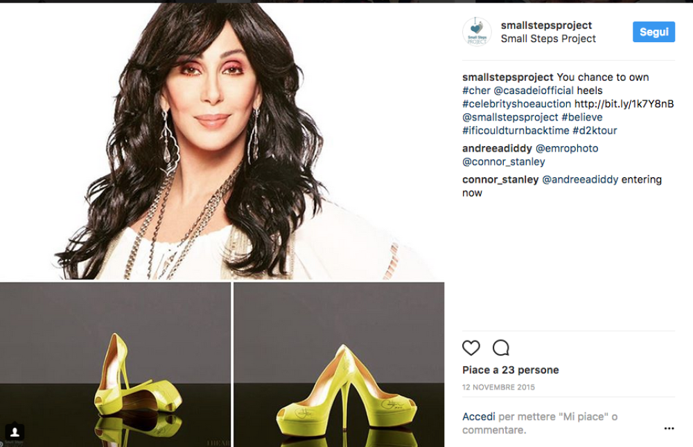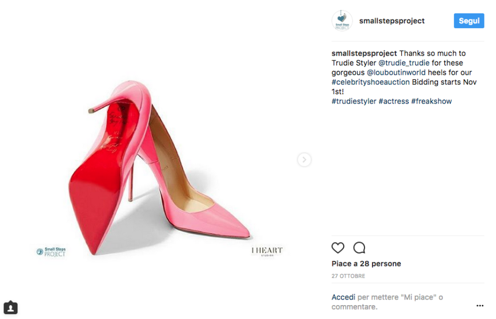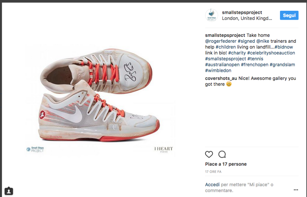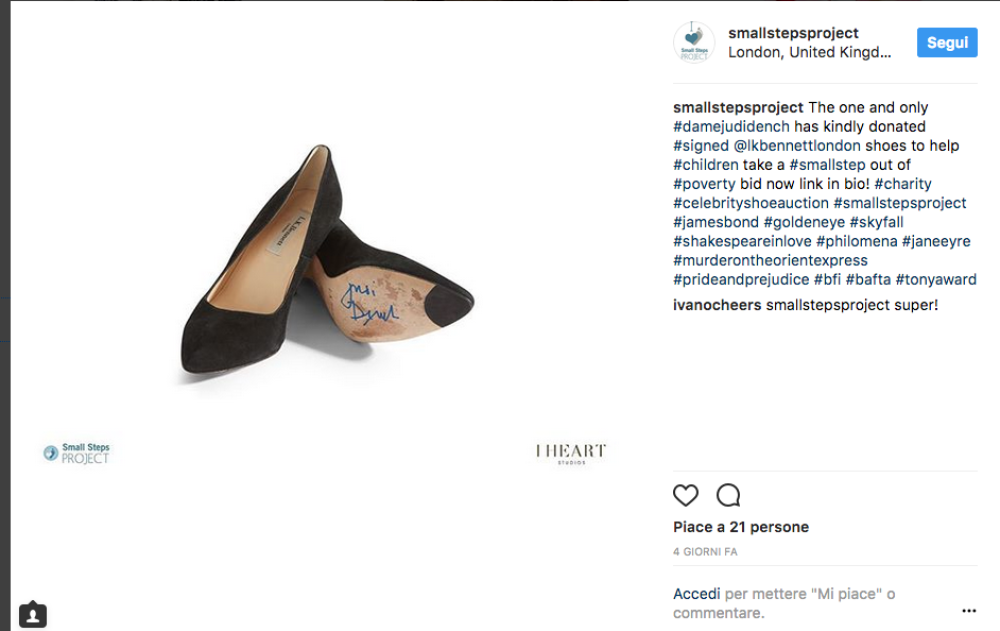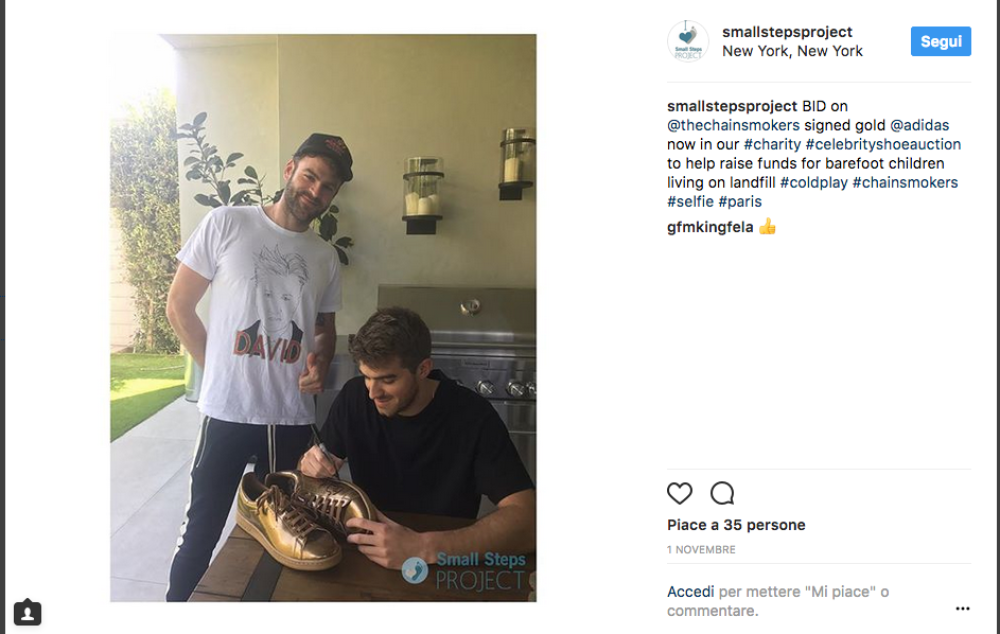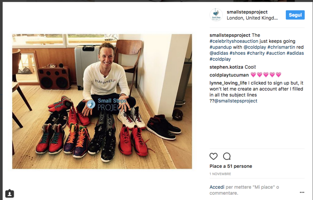 Stavolta è proprio il caso di dirlo: gli artisti… ti fanno le scarpe! O meglio, mettono all’asta alcune delle loro calzature, debitamente autografate, e naturalmente a fin di bene. Il denaro ricavato dalla vendita andrà infatti all’associazione britannica The Small Steps Project, che aiuta gli adulti a trovare lavoro e i bambini a ricevere un’adeguata educazione.