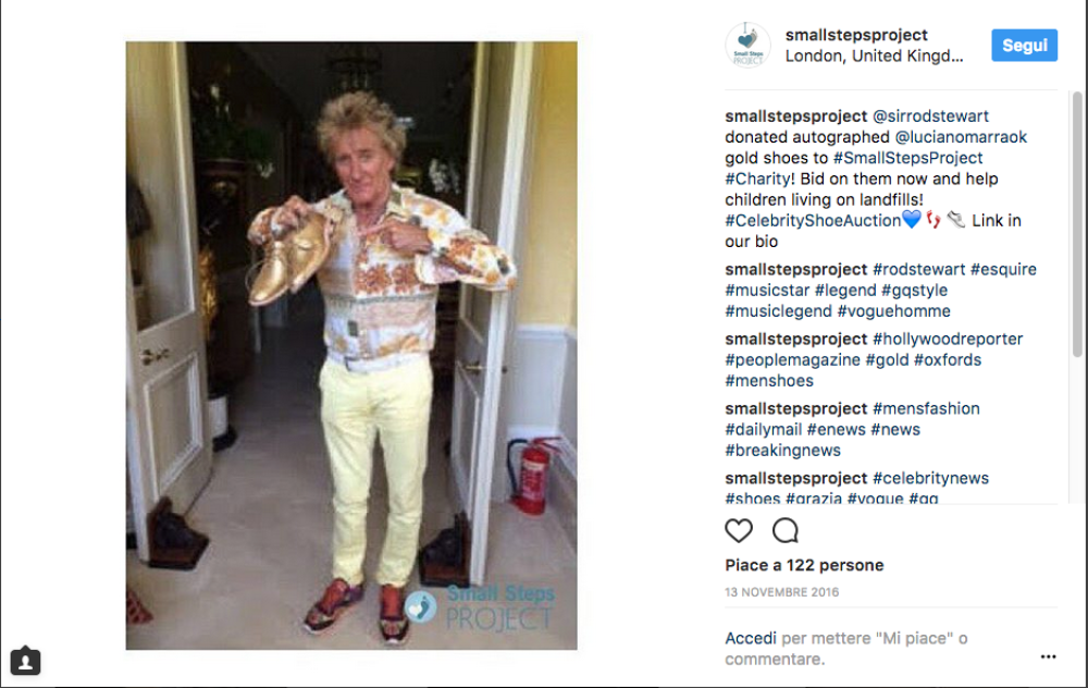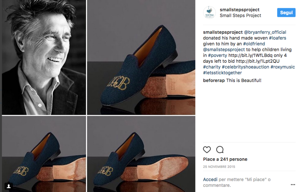 Tra gli artisti che hanno donato un paio delle loro scarpe, Chris Martin dei Coldplay, Moby, Annie Lennox, Tom Jones, i Depeche Mode, Ozzy Osbourne, Bryan Ferry, Katy Perry, Rita Ora, Ed Sheeran. Non mancano gli sportivi, da Roger Federer a Leo Messi, e gli attori, da Natalie Portman a Ralph Fiennes. E ha dato un paio delle sue calzature anche il leader del partito Labour britannico, Jeremy Corbyn. Guarda la gallery.