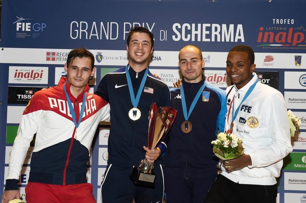 Grande successo per il Grand Prix FIE TROFEO INALPI, che si è svolto a Torino, PalaRuffini, il 1, 2 e 3 dicembre. A vincere è stato lo statunitense Alexander Massialas, numero uno del ranking mondiale, che ha battuto il russo Timur Safin, numero due del mondo e del tabellone, per 15 – 13.