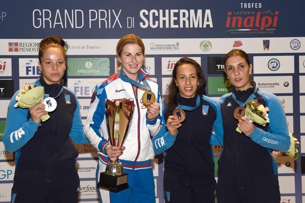 Il podio femminile vede al primo posto la russa Inna Deriglazova, campionessa olimpica 2016 e mondiale in carica, che in finale si è imposta su Alice Volpi per 15 – 9. A pari merito, le altre due azzurre Arianna Errigo e Valentina De Costanzo.