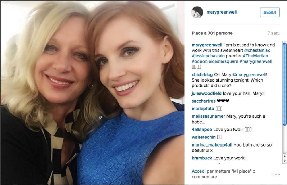 Negli ultimi anni, Mary Greenwell si è occupata di alcune tra le più celebri star di Hollywood, da Cate Blanchett a Uma Thurman, passando per Jessica Chastain. Il suo account Instagram raccoglie splendide immagini di queste dive e acconciature e make spettacolari.