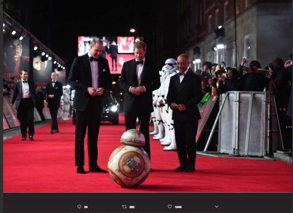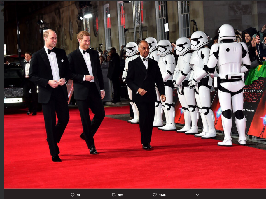 I Principi William e Harry hanno recitato nell’ultimo film della saga di Star Wars, “The Last Jedi”. Avete visto il film e non li avete riconosciuti? Certo, perché indossavano l’uniforme delle guardie dell’impero, che copre completamente il corpo e il viso. Un dettaglio, però, poteva quanto meno insospettire: le guardie sono alte tutte un metro e ottanta, ma in una scena due di loro sono alte un metro e ottantasette circa: appunto l’altezza dei Principi William e Harry.