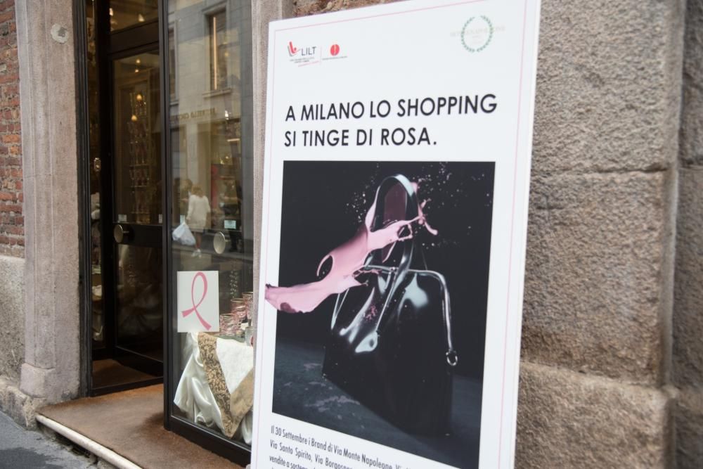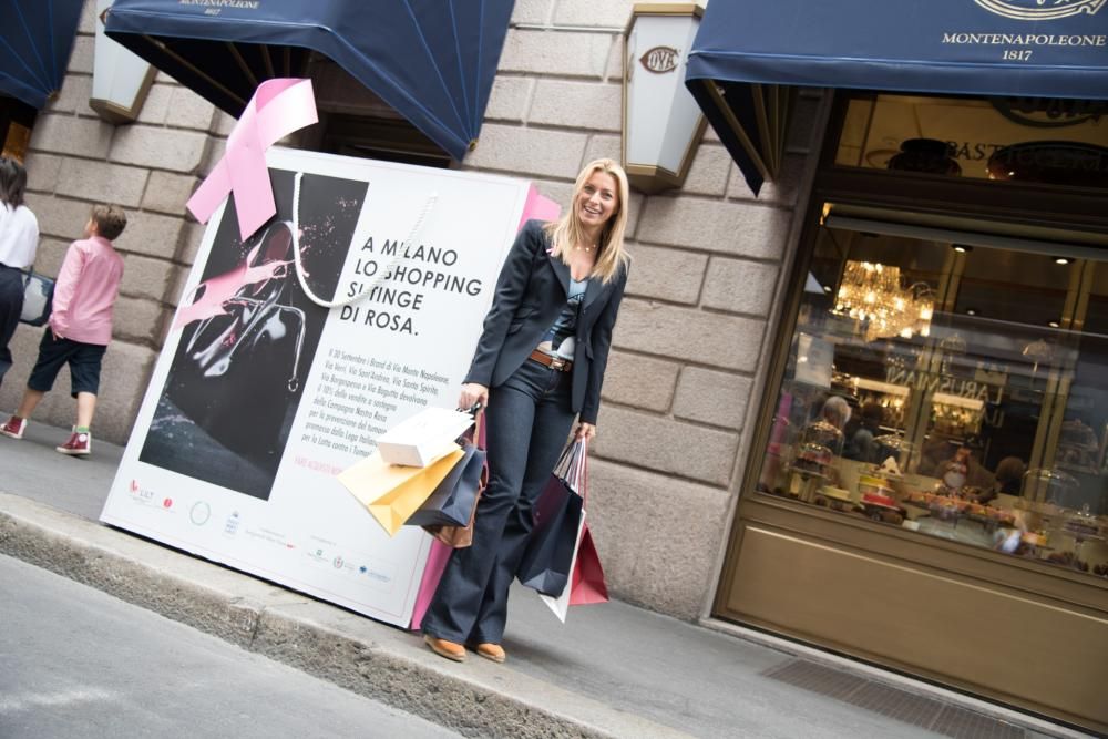 E’ l’ottavo anno consecutivo in cui il Quadrilatero della Moda scende in campo al fianco dell’Associazione. L’evento, chiamato lo Shopping fa bene alla salute, coinvolge scenograficamente le vie Monte Napoleone, Verri, Sant’Andrea, Santo Spirito, Borgospesso, Bagutta e Gesù, tra installazioni aeree raffiguranti dei nastri rosa, moquette e shopper su strada. I brand che aderiscono alla Campagna devolveranno il 10% dell’incasso dell’intera giornata per contribuire all’acquisto di un mammografo digitale con Tomosintesi per una più accurata diagnosi del tumore al seno, per lo Spazio Prevenzione di via Caterina da Forlì a Milano.