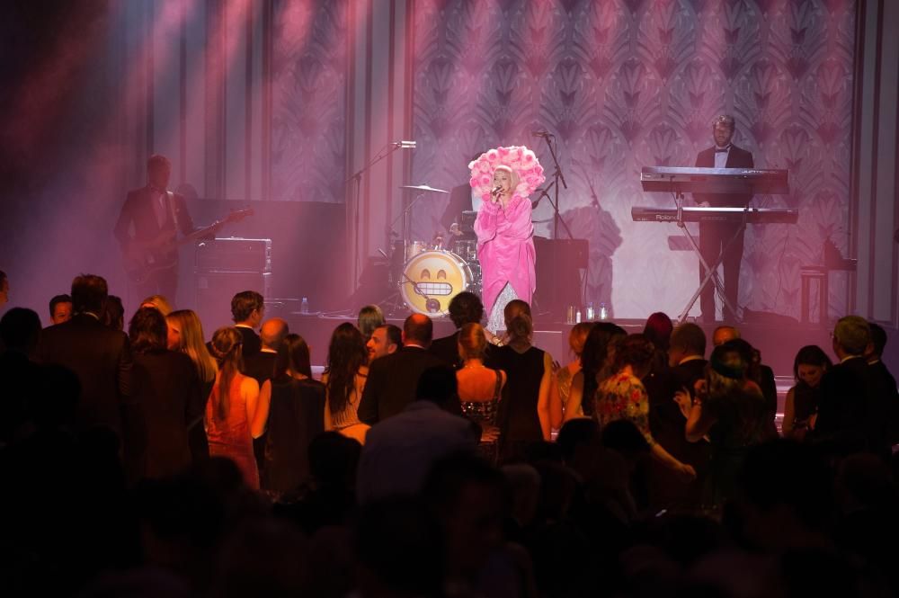 Inizia la cena poco dopo le 21 con creme brulée di foie gras e sorbetto di mela Granny. Seguono filetto di branzino al purè di asparagi con caviale e burro allo champagne e un filetto di manzo ai legumi, poi il dessert. Al tavolo di Pierre e Charlotte ci sono anche John Elkhann con la moglie Lavinia, mentre con Alberto II e Caroline siedono Franca Sozzani, Karl Lagerfeld e Paola Marzotto. Tra i volti noti in sala si vedono l’ex ballerino Michail Barishnikov ed Emanuele Filiberto di Savoia, lo stilista Kenzo e i gioiellieri Alberto e Giò Repossi, Carlo e Camilla di Borbone. La serata decolla in musica, prima con l’incredibile voce di Faada Freddy e poi con il mini concerto di Lily Allen. Alle 22.30 appare sul palco in costume e parrucca anni Trenta e apre con “Not Fair”. Charlotte, Pierre e Beatrice entrano in pista e aprono le danze.