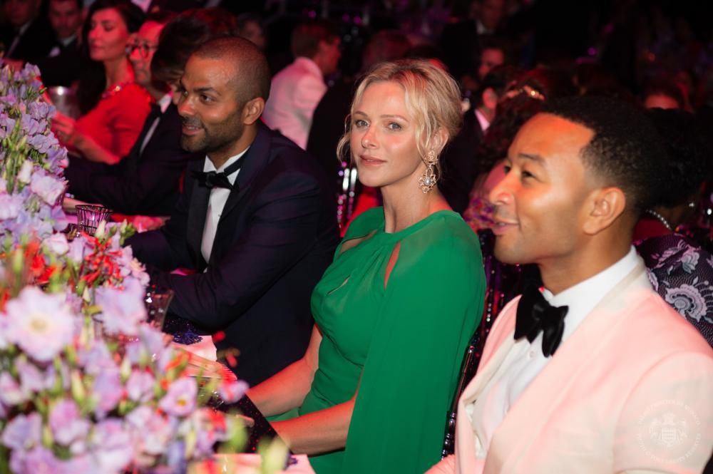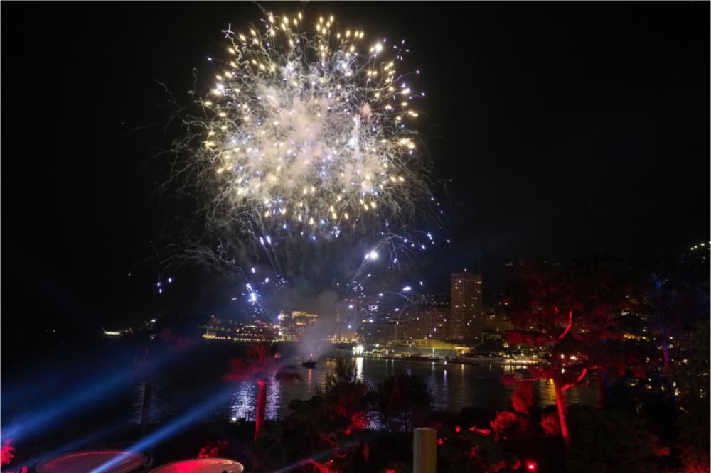 Sono il Principe Alberto II e la Principessa Charlene ad aprire le danze. Poi il cielo s’illumina con i fuochi d’artificio e subito dopo John Legend è sul palco con il pianoforte.
