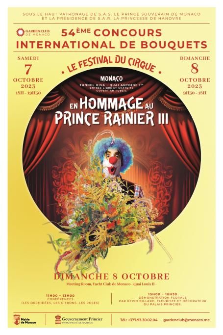 La 54a edizione si svolge il 7 e 8 ottobre, nel Tunnel Riva situato lungo il molo Quai Antoine I°. Sono attesi partecipanti da tutta Europa e in occasione delle commemorazioni del Centenario della nascita del Principe Ranieri III, il Garden Club di Monaco, organizzatore dell’evento, ha deciso che il tema di questa edizione del Concorso Internazionale dei Bouquet fosse il circo, di cui Ranieri III era un grande appassionato. Fu lui a creare il Festival Internazionale del Circo di Monte-Carlo, che oggi è conosciuto in tutto il mondo.