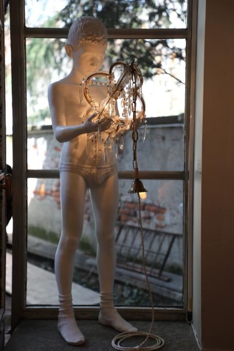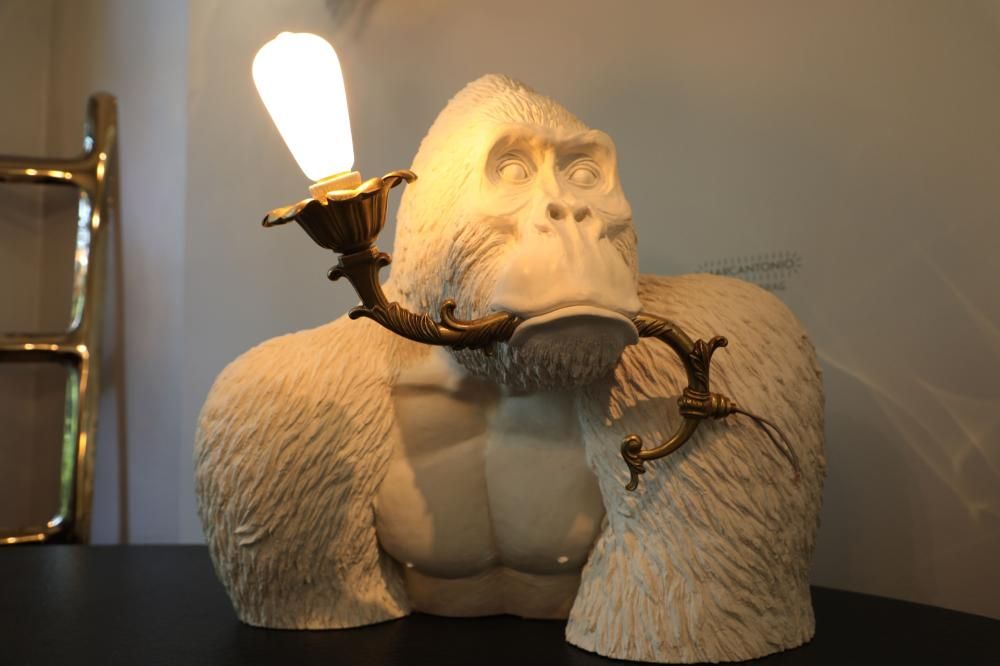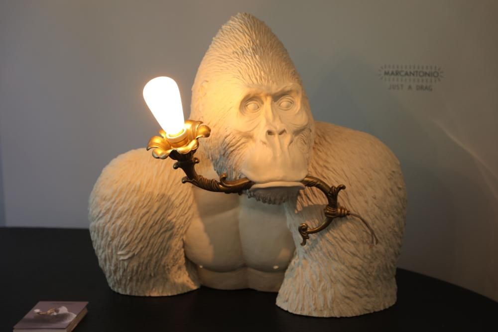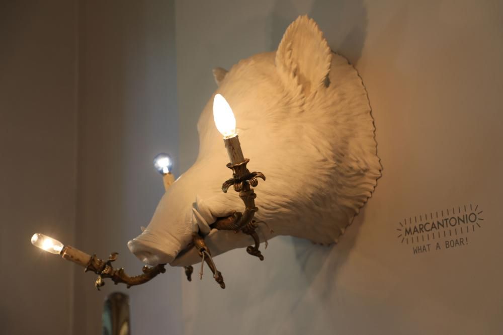 Altra magica stanzetta degna di nota è quella di Marcantonio, che ha creato una serie di animali esotici con annessi lampadari, lampadine e abat-jour. Marcantonio, che fa (letteralmente) dell’ironia il suo mestiere, mischia sempre un componente estetico (solitamente una figura presa in prestito dal mondo della natura) a dei concetti, che in questo caso ci ha gentilmente e comicamente spiegato pezzo per pezzo (guardate i nostri video nella fotogallery). Per citarlo e riassumerlo in una frase: “L’ironia è una cosa seria e importante. Se una buona idea è anche divertente non posso trattenermi dal realizzarla”