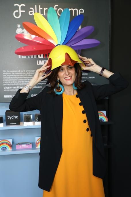 Valentina Fontana, la deliziosa e coloratissima art director e fondatrice del Brand Altreforme, ci spiega come i pezzi di questa presentazione siano volutamente giocosi e ironici, come non abbiano scopo alcuno che non sia quello puramente decorativo. I pezzi sono infatti un veicolo di comunicazione per i valori del Brand che celebra i suoi primi 10 anni. Io e Valentina ci siamo divertite a giocare con i pezzi in esposizione, cavalcando l’umore giocoso dell’esposizione come potete vedere nella fotogallery.