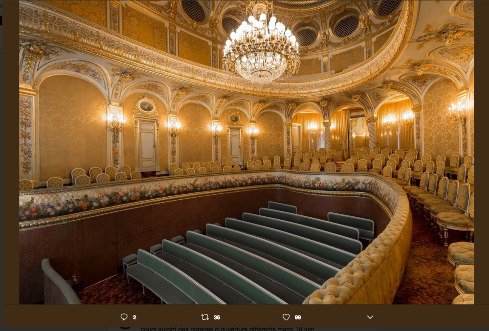 Il teatro sarà ben presto aperto alle visite, per far scoprire tutto il fasto di un’epoca, il Secondo Impero, passato alla storia per il fascino e l’eleganza del suo stile e per il carisma della bellissima Imperatrice Eugenia.