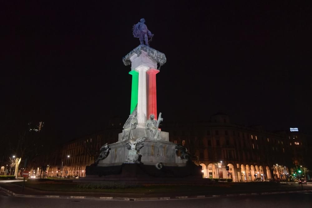 Anche l’Italia naturalmente non è stata da meno. Taormina ha illuminato col tricolore il suo Teatro Greco; Torino il monumento dedicato a Vittorio Emanuele II, simbolo dell’Unità del nostro paese. Genova ha proiettato sul suo monumento simbolo, la Lanterna, la nostra bandiera. Così come Pistoia e Macerata, che hanno colorato di verde, bianco e rosso la Piazza del Duomo e lo Sferisterio.