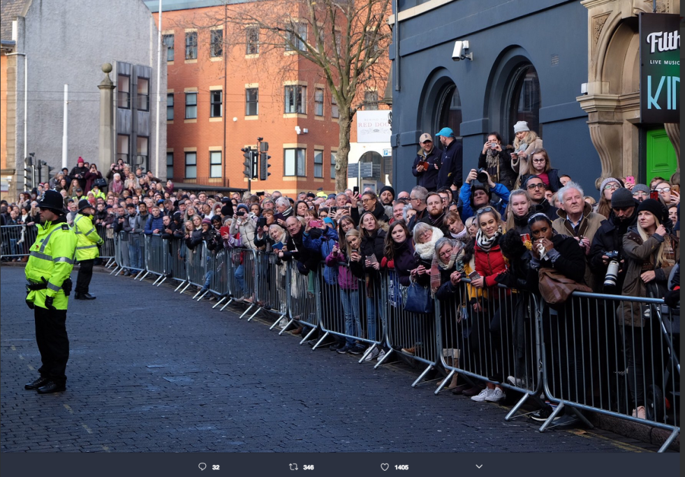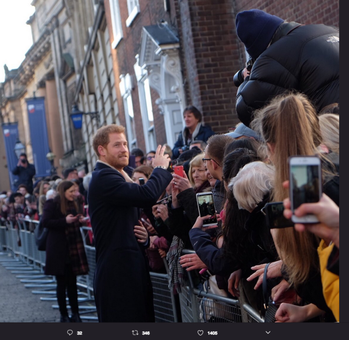 Prince Harry and Ms. Markle meet crowds who have gathered outside the National Justice Museum in Nottingham. pic.twitter.com/apONYppYb2