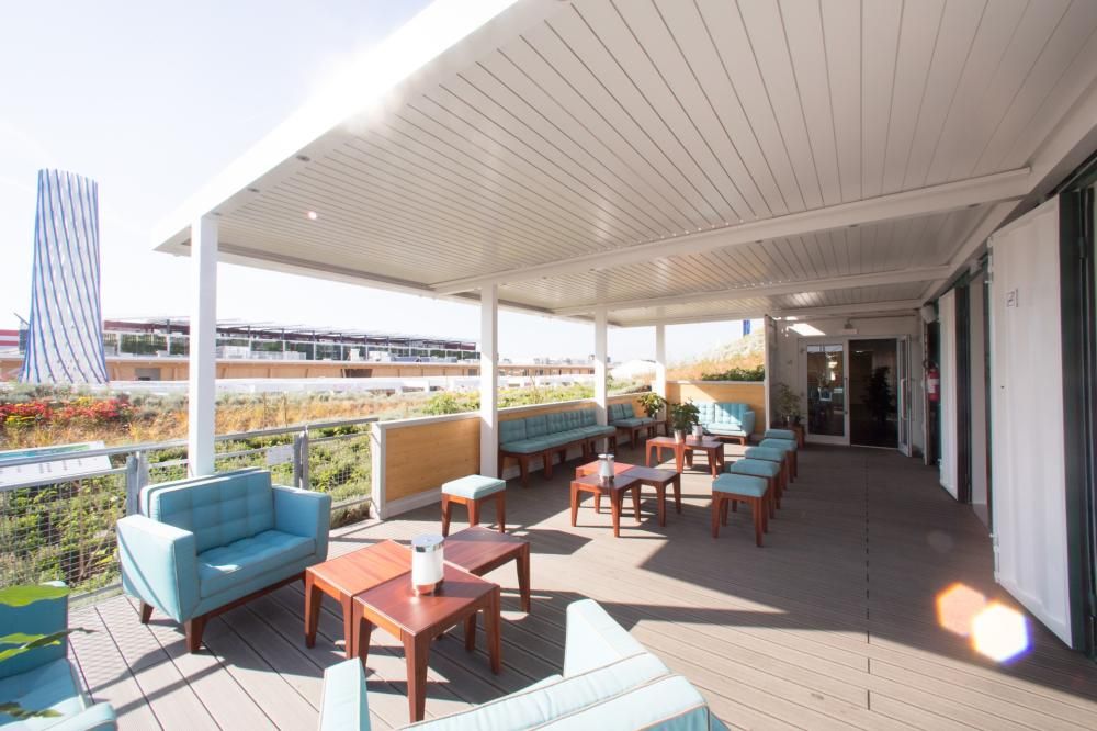 A far bella mostra di sé sul tetto del Pavillon Monaco è un magnifico roof garden, che ha già incantato i tanti visitatori del padiglione. La sua forma vuole evocare i rilievi del Sud Est della Francia, caratterizzato da montagne che scendono verso il mare. In cima, il fiume “Blue Ribbon”, simbolo dell’irrigazione, pratica indispensabile all’agricoltura.