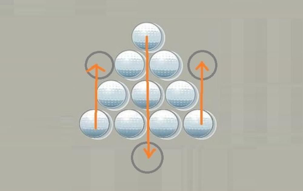 Questo è il quesito: Risistema solo tre palline da golf nel disegno, in modo che il triangolo risulti con la punta in giù, invece che in su.