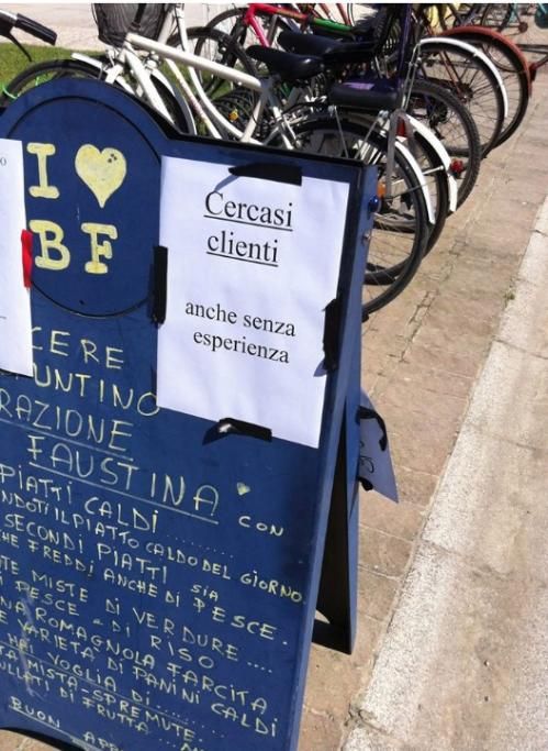 In quasi tutte le città italiane c’è almeno un Bar Collo, o un panettiere Pan per Focaccia. Il progetto Il Marketing insegnato (d)ai negozianti raccoglie su Tumblr alcune tra le insegne più assurde e i cartelli più originali dei commercianti italiani, e non solo: dai saldi “fino ad esaurimento del personale” alla paninoteca iPhame, passando per il caustico “Cercasi clienti (anche senza esperienza)”.