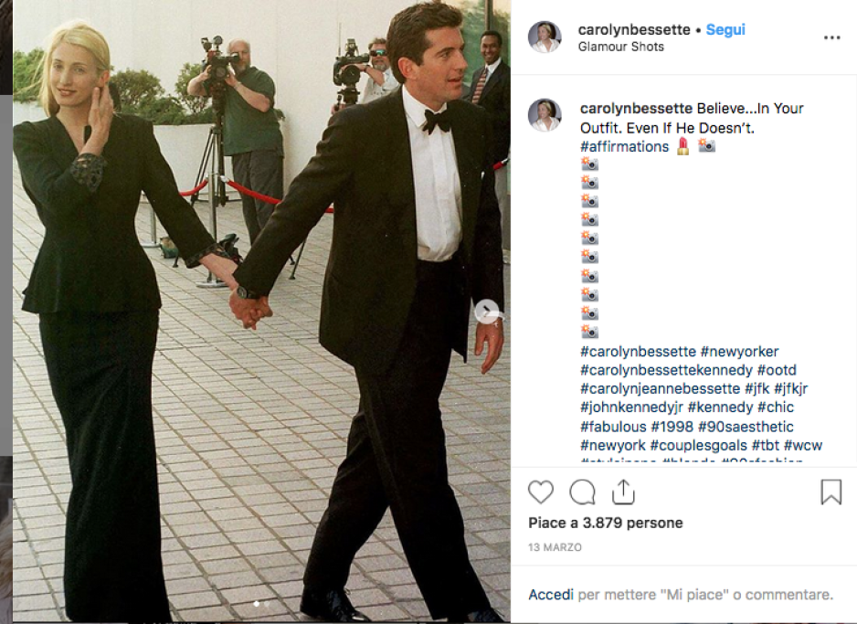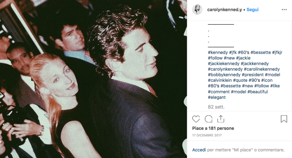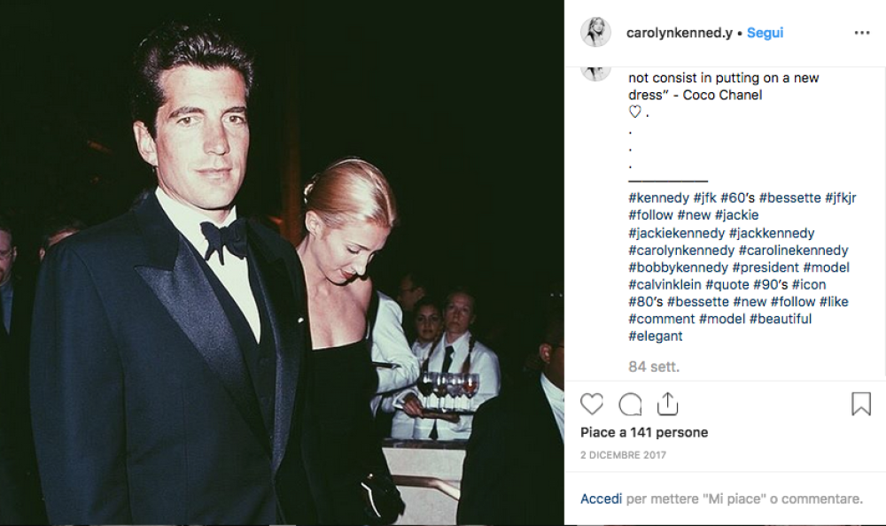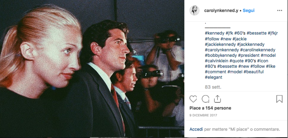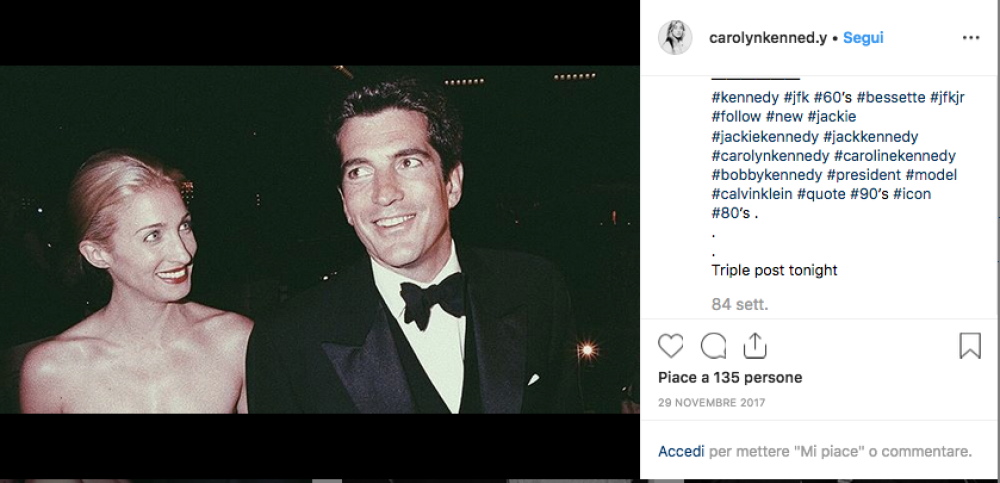 Era il 16 luglio del 1999 quando una coppia smagliante, ammirata, glamour, scompariva nell’Atlantico. J.F. Kennedy jr detto John John, figlio del Presidente John Kennedy e di Jackie, e sua moglie Carolyne Bessette precipitavano nell’Oceano Atlantico, a bordo del Piper pilotato dal giovane Kennedy. Con loro anche la sorella di Carolyne, Lauren.