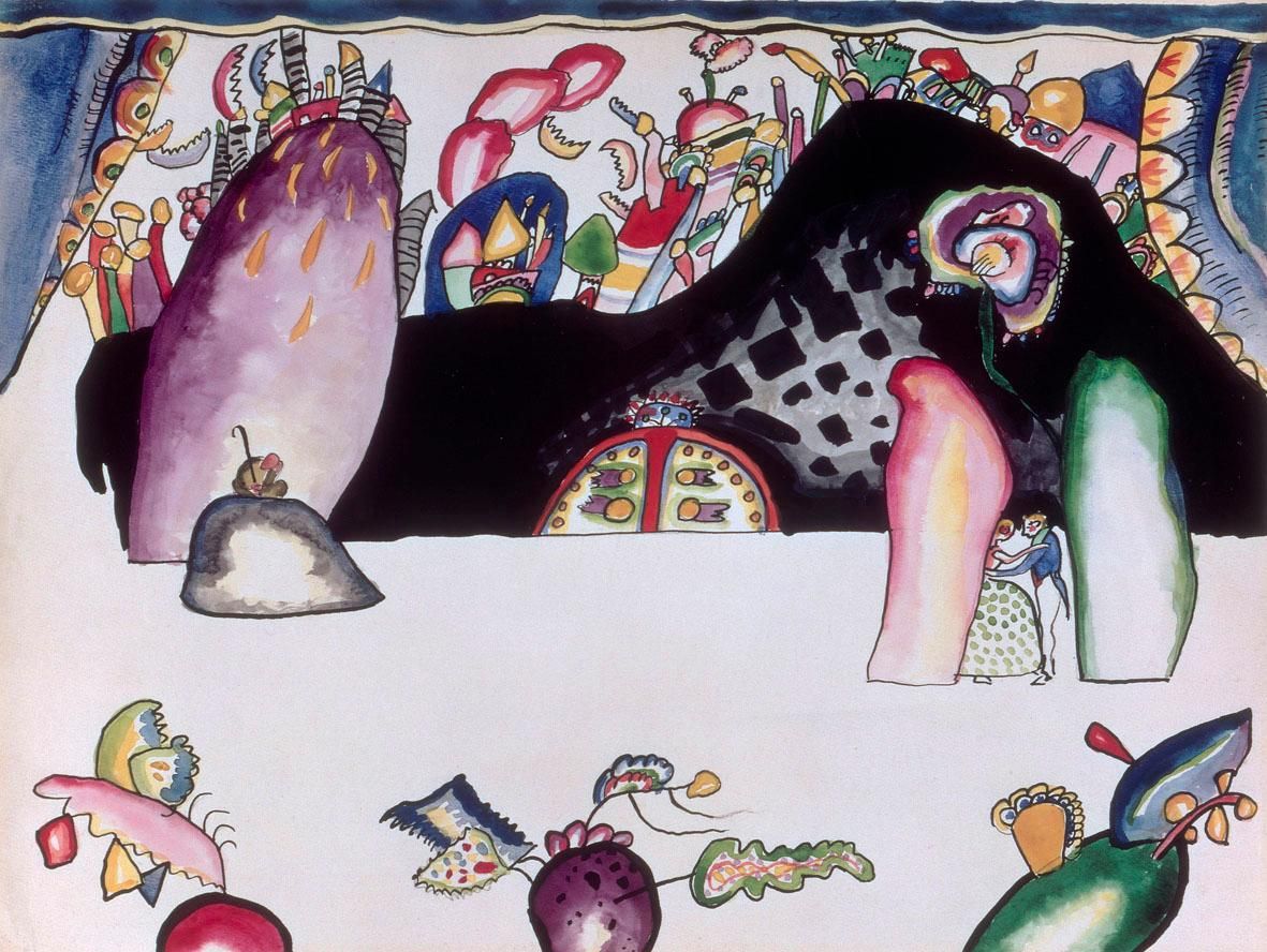 Kandinsky si lasciò ispirare dalle composizioni musicali di Maestri come Constantin Čiurlionis e Arnold Schöenberg e nel 1910 portò a compimento la sua idea di astrattismo spirituale, esprimendo nelle sue opere il suono interiore dei segni e dei colori. Per Kandinsky la musica è chiave privilegiata di volta per accedere all’arte astratta, letta anche in senso mistico, religioso e cosmico.