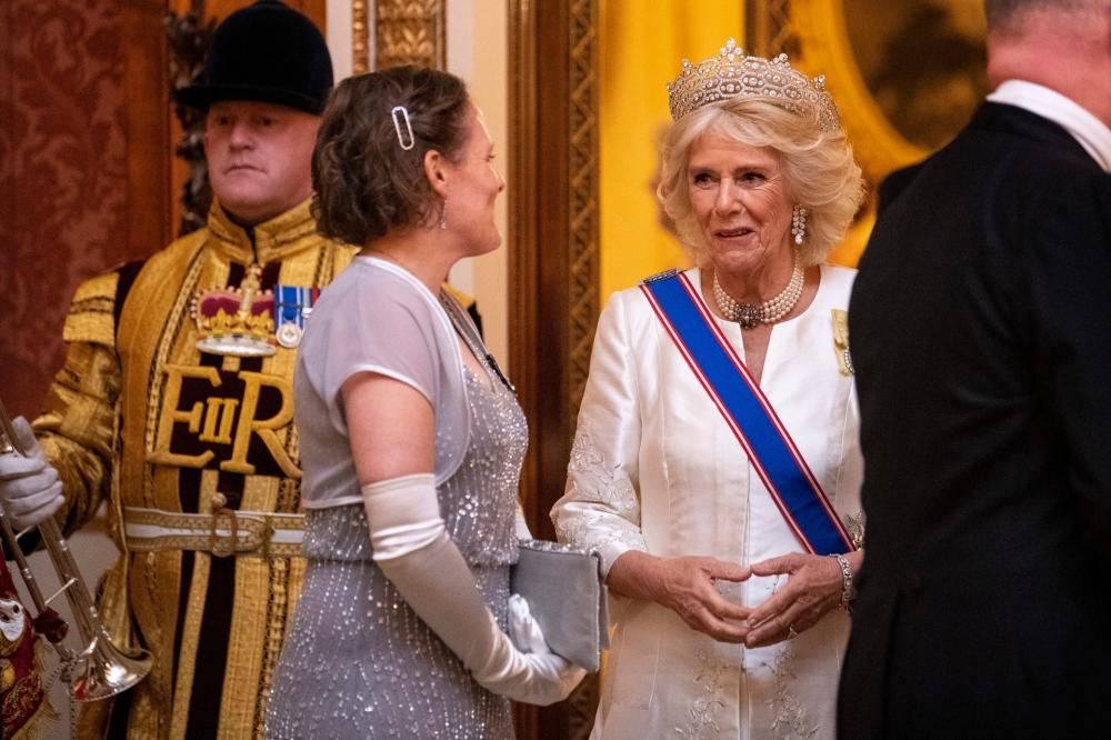 Al party di Buckingham Palace ha fato scalpore Kate Middleton, in abito Alexander McQueen, con l’onorificenza di Dama di gran Croce dell’Ordine Reale Vittoriano e la splendida tiara Cambridge (detta anche Lover’s Knot Tiara), che la Regina Elisabetta aveva donato a Lady Diana per il matrimonio con il Principe Carlo (anche se Lady Diana quel giorno preferì indossare una tiara di famiglia). Allo stesso ricevimento, la Regina Elisabetta indossava la Vladimir Tiara (con perle, diamanti e smeraldi), la sua preferita, alla granduchessa Maria Pavlovna di Russia, rubata durante la Rivoluzione, recuperata poi da una spia britannica. La Duchessa di Cornovaglia Camilla indossava la Grevilla Tiara, appartenuta alla dama di compagnia della Regina Madre.