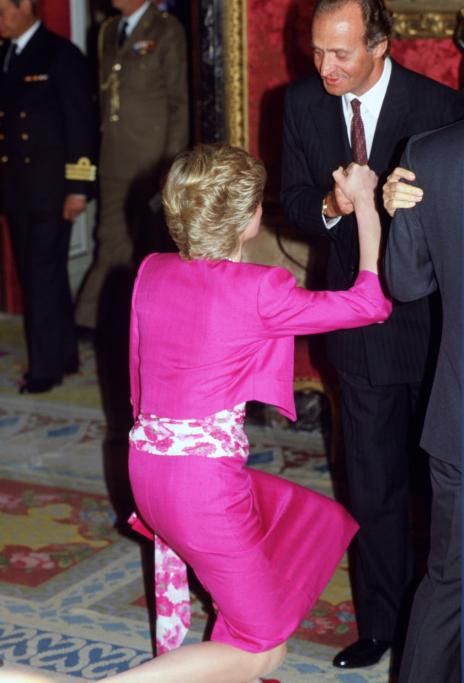 L’inchino si chiama curtsy e tutte le signore devono eseguirlo al cospetto della Regina Elisabetta o di un membro della famiglia reale più alto in grado rispetto alla loro posizione.
