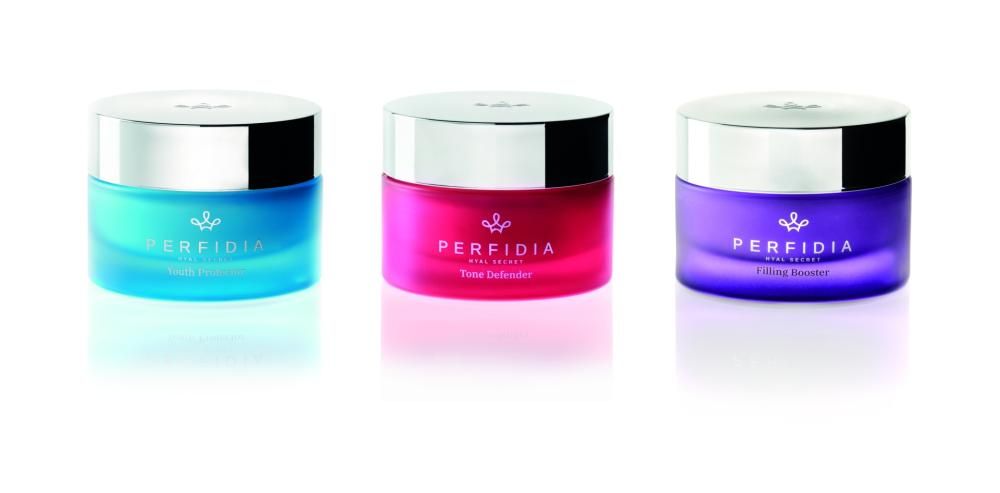 Formulata per preservare lo splendore della pelle a tutte le età, l’innovativa linea Perfidia Hyal-Secret offre tre differenti varianti, ad azione mirata, a base di diverse combinazioni di selezionate molecole di acido ialuronico: Youth Protector, formulato per custodire la giovinezza della cute e regalare elasticità e idratazione profonda, è composto da crema viso dalla texture fresca e delicata e dal gel contorno occhi, dal tocco asciutto, che si assorbono rapidamente lasciando una piacevole sensazione di freschezza e benessere.