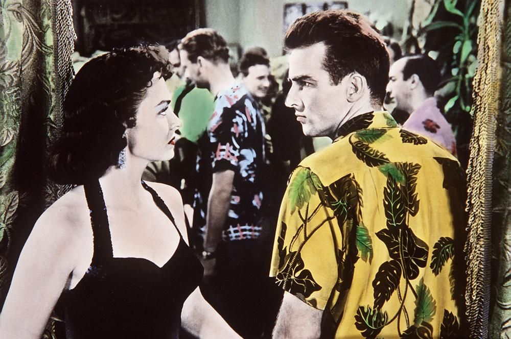 Come dimenticare poi la divisa d’ordinanza di “Ace Ventura L’Acchiappanimali”, che vedono un Jim Carrey indossare camicie che vanno dai motivi di frutta a quelli floreali? E un DiCaprio agli esordi in “Romeo + Juliet” che incarna perfettamente le tendenze Anni 90? La storia della camicia a fiori può però rappresentare anche l’eleganza maschile, come dimostra la pellicola “Da qui all’eternità” del 1953 che vanta un cast di gentleman: Frank Sinatra, Burt Lancaster, Montgomery Clift.