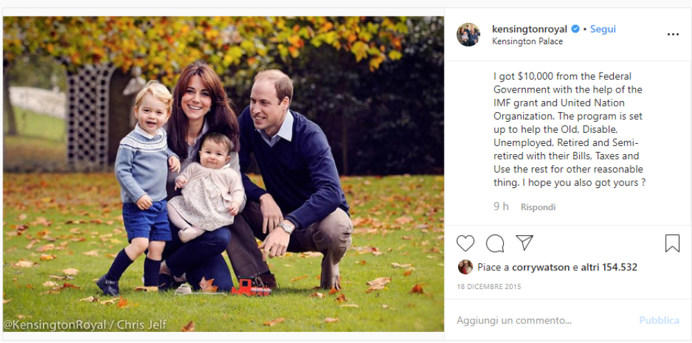 La cartolina è stata però protagonista di un giallo: è infatti comparsa sui social prima della sua pubblicazione ufficiale sulla pagina Instagram dei Reali ed è poi sparita all’improvviso.