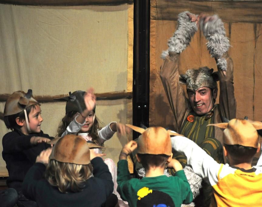 Protagonisti dello spettacolo sono un Lupo affamato simpatico e maldestro, tanti capretti giocherelloni e una mamma affettuosa che si deve allontanare…
