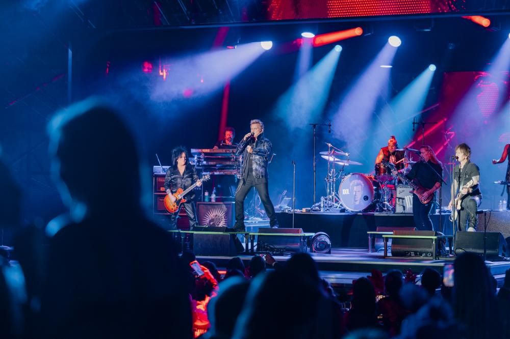 Poi i fuochi d’artificio e mezzanotte il programma di intrattenimento musicale che accompagna tutta la serata, culmina con l’esibizione di Billy Idol. Applausi per lui, per la band e per i suoi successi che non si dimenticano, tra i quali «Flesh for fantasy» 1984, “Eyes without a face” 1983, « Mony Mony » 1985, fino al tema del film Top Gun eseguito, come nella colonna sonora, dal chitarrista Steve Stevens, che tra le sue collaborazioni ha anche quella con Michael Jackson per Dirty Diana. C’é tempo per « Dancing with myself » 1981, “Hot in the city” 1982 e finale con « White Wedding » sono un passaggio che entusiasma, un richiamo agli anni ‘80. Indimenticabili.