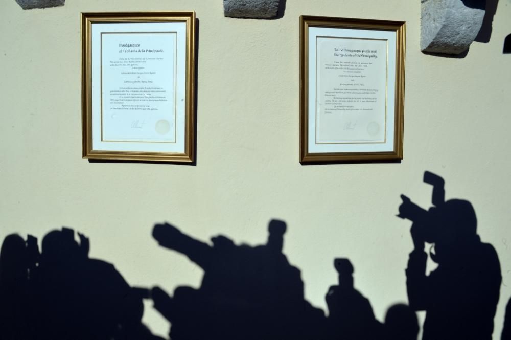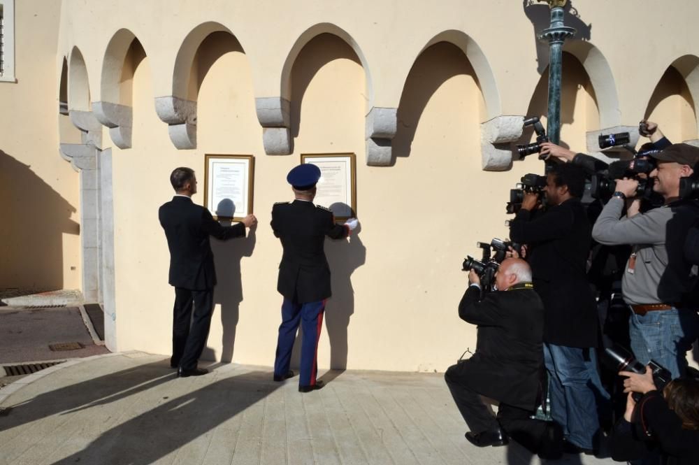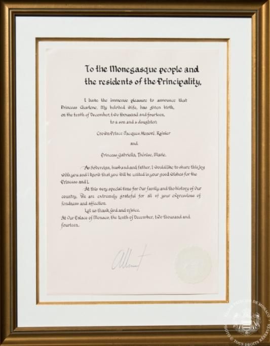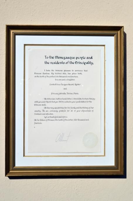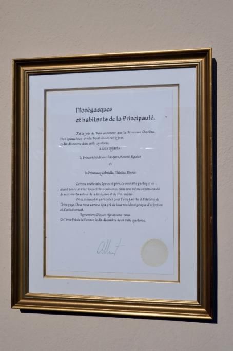 Dopo il lieto evento del 10 dicembre, due quadri (in francese e in inglese) con la notizia della nascita dei due Principini sono esposti al Palais Princier