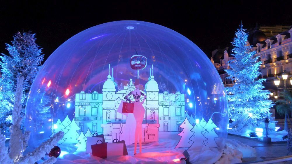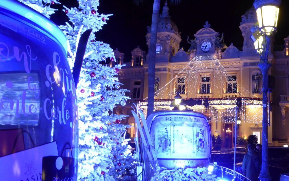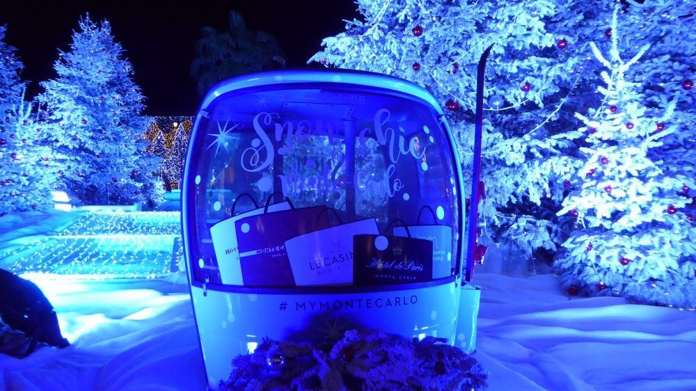 Per le Feste di Fine Anno la piazza del Casinò di Monte Carlo e le boutique del Jardin des Boulingrins sono state trasformate in un pezzetto di montagna d’Antan, con vecchi sci, slittini e cabine di ovovia.