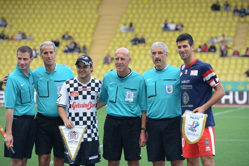 A metà del primo tempo è anche sceso in campo S.A.S. il Principe Alberto II, salutato da una calorosa ovazione del pubblico. Il secondo tempo mostrava uno Star Team soddisfatto e quasi rinunciatario, che permetteva così ai piloti di segnare un gol con Engel. Sostituiti Massa, Perez, Stevens, Merhi e Capelli, restavano in campo Gutierrez e il ds Ferrari Massimo Rivola (Vettel era assente perché l’anno scorso aveva subito entrate troppo dure e rischiose specie da parte di Marco Simone, Alonso non ha giocato perché afflitto da un orzaiolo all’occhio sinistro). Al fischio finale la Nazionale Piloti metteva a segno il secondo gol grazie a Damiani, ma questo non è bastato a risollevare le sorti della squadra, come ha commentato il coach, Mario Di Natale, che ha dichiarato che da tre anni S.A.S. il Principe Alberto schiera in campo una squadra di professionisti, mentre la Nazionale Piloti ha perfino dovuto rinunciare a Vettel, Alonso e Rosberg, tre atleti che col pallone ci sanno fare. Anche se sconfitti, resta però la soddisfazione per una partita avvincente, i cui proventi saranno interamente destinati in beneficenza.