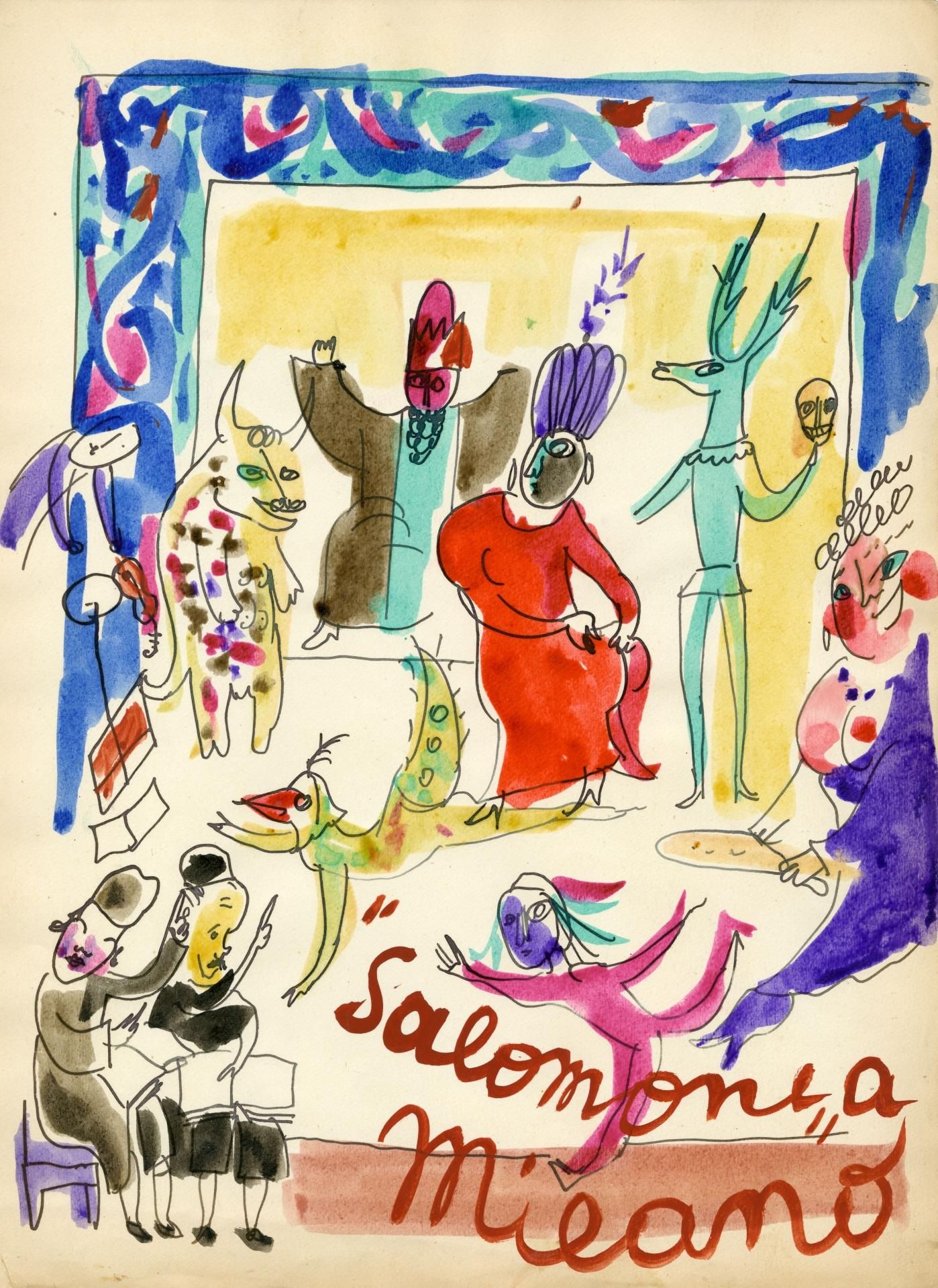 I rari bozzetti originali per la scenografia de Il Flauto Magico, rappresentato al Festival di Glyndebourne del 1963.
