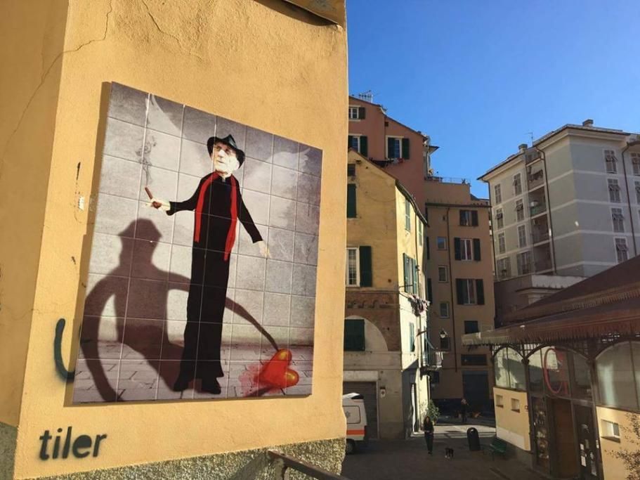 Trasformare il degrado in arte rendendo i quartieri più difficili dei veri e propri musei a cielo aperto. Succede a Genova, grazie allo street artist Tiler. Tiler, che vuole rimanere nell’anonimato (infatti quando deve dipingere un’opera va in giro indossando sempre una maschera da scimmia), ha dato vita a una provocazione artistica che vuole mettere in luce alcune zone degradate della città. Tiler crea, in zone difficili e edifici abbandonati, lavori realizzati con mosaici di piastrelle. E’ il caso di “Il cane nello spazio”, opera che adesso adorna un ex palazzo di assicurazioni in Corso Gastaldi, da tempo abbandonato. Tra le altre creazioni di Tiler, “L’ippopotamo nel barile”, “La farfalla” e “I promessi sposi” (quest’ultima però si trova in un quartiere di lusso).