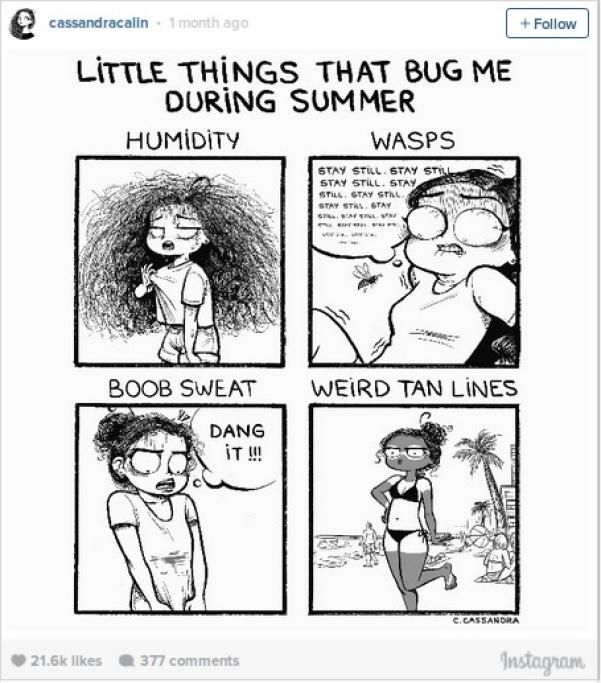 Qualche esempio? Meglio illustrarlo: ecco allora le 11 vignette realizzate dall’artista Cassandra Calin che spiegano come d’estate la vita femminile si complichi…ulteriormente!