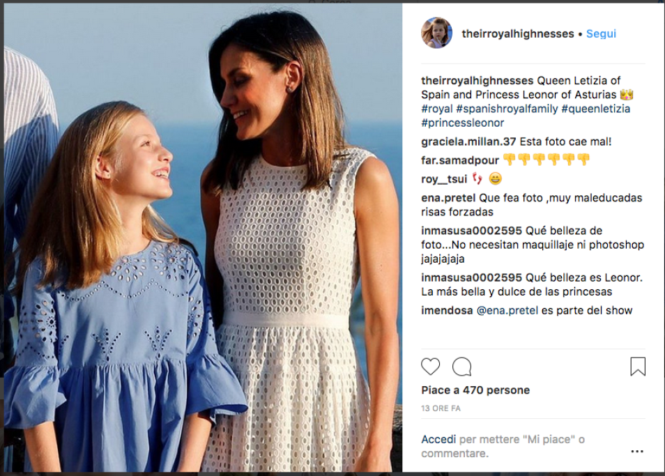 Sono entrambe reduci da un mese lontano dai genitori, negli Stati Uniti, per perfezionare la lingua (come ha raccontato il padre) e trascorrere del tempo insieme a loro coetanei provenienti da ogni parte del mondo. Un modo per Leonor, oltre alla crescita personale, di iniziare a inserirsi nel mondo che l’aspetta. Anche se la bambina sembra già essere pronta per il ruolo che la attende. Il prossimo 8 settembre Leonor parteciperà al primo evento ufficiale a fianco del padre, la celebrazione per i 1300 anni del Regno delle Asturie e al centenario dell’incoronazione della Vergine di Covadonga. I genitori, finora, avevano preferito tenerla lontana da qualsiasi impegno pubblico, ma il suo momento sembra essere arrivato.