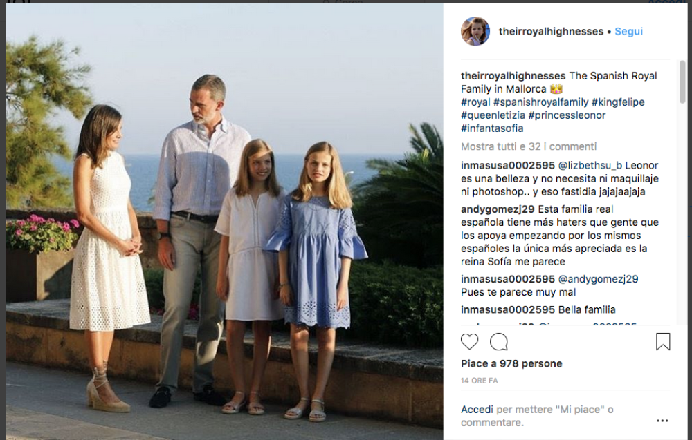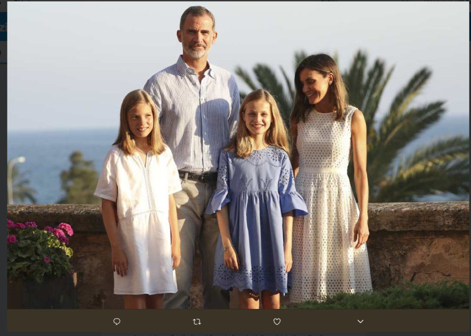 I Reali Spagnoli sono in vacanza a Palma di Maiorca con le figlie Leonor, 12 anni e futura erede al trono, e Sofia, 11 anni. Maiorca è una tradizione per i Borbone che anche quest’anno, dopo aver concesso sorrisi e dichiarazioni alla stampa, si godono la meritata privacy a Marivent Palace, un luogo con giardini meravigliosi e una vista sul mare mozzafiato.