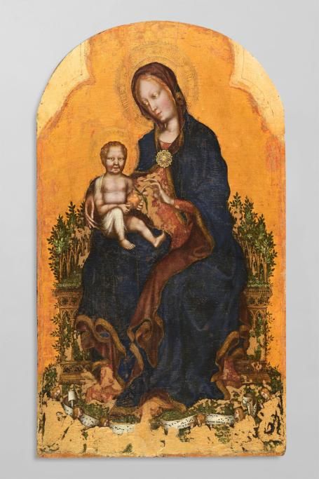 Sono ancora suggestioni visive, semantiche e iconografiche a ispirare dialoghi come quello fra la bellezza smaterializzata della Golden Marilyn 11.40 di Andy Warhol e l’Angelo dalla Pala dei cacciatori di Bartolomeo Caporali, l’Oroblu (Oriente) di Carla Accardi e il manto in tessuto operato della Madonna col Bambino del Maestro della Madonna di Montone, o La Maddalena tutta “mentale” di Fausto Melotti e la santa dalle lunghe chiome e dalle vesti opulente dipinta da Taddeo di Bartolo per il Polittico di San Francesco al Prato.