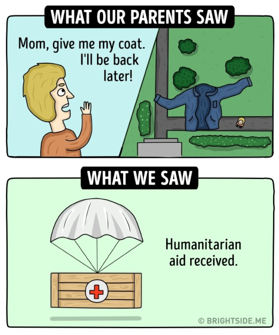 Bright Side ha cercato di riaccendere un pò di quella fantasia perduta, ricordando come può essere diverso e divertente il mondo visto con gli occhi dei bambini, in queste 13 vignette.