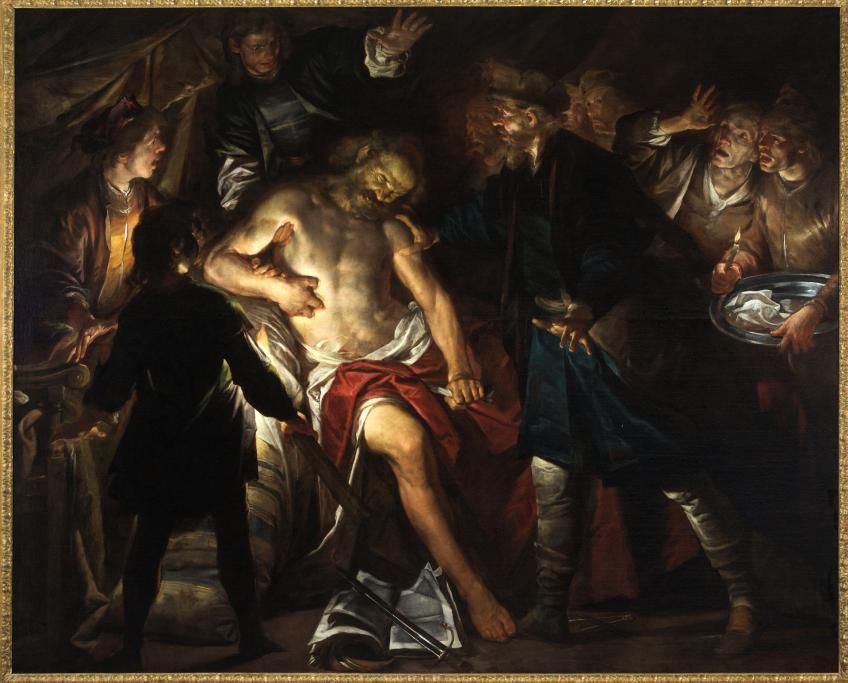 Il Martirio di sant’Orsola testimonia l’ultima stagione artistica di Caravaggio. Dipinto nel 1610, fu inviato a Genova a Marcantonio Doria, che l’aveva commissionato, ma le reazioni furono tiepide, se non indifferenti, perché in quegli anni il naturalismo caravaggesco stava per cedere il passo all’esplosione del Barocco. I diversi itinerari sono semplificati dalle collezioni dei due fratelli Doria, Marcantonio e Giovan Carlo, banchieri e mecenati di grande munificenza. Napoli si mostra così ancora ricca di caravaggismo ed echi classicheggianti (opere di Battistello Caracciolo e José de Ribera), Milano e Genova più “avanguardistiche”, con tele di Giulio Cesare Procaccini, Pieter Paul Rubens, Bernardo Strozzi, Simon Vouet.