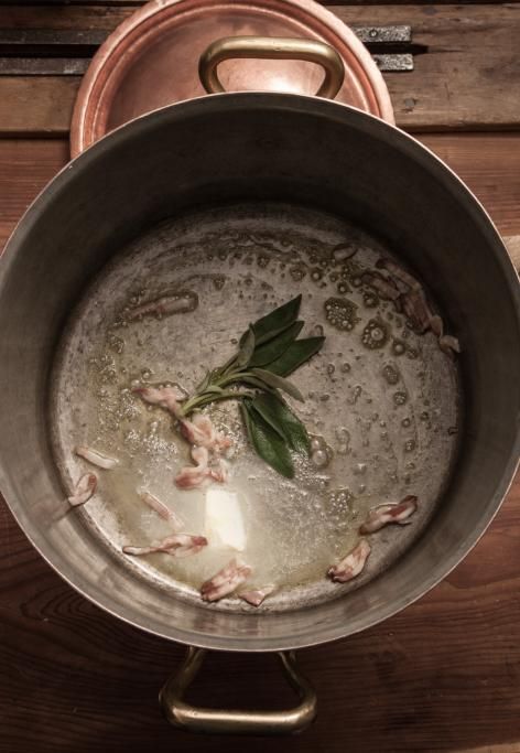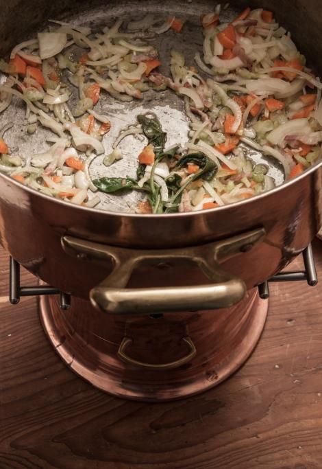 Potremmo parlare quindi di minestra maritata e di un pignatto grasso, ma anche di olla podrida (o oglia potrida come riporta Bartolomeo Scappi nella sua Opera del 1570), cotta nel caldaro e prevedendo per altro tra gli ingredienti proprio i cavoli milanesi (o addirittura di feijoada, cazuela de cerdo…). Per fortuna dal generale si passa al particolare e anche una ricetta che ci lascia immaginare una natura complessa e multiculturale, alla fine va via via raffinandosi e adeguandosi a usi e costumi in luoghi specifici. A tal proposito Giuseppe Sorbiatti riporta nell’ultima edizione della sua opera Gastronomia moderna, pubblicata sul finire dell’800, la preparazione Cibreo o bottaggino detto Cazzuola, e altresì ci rende edotti di una variante interessante, contenuta nella ricetta Coste e code di majale alla villareccia.