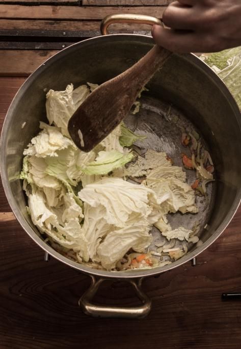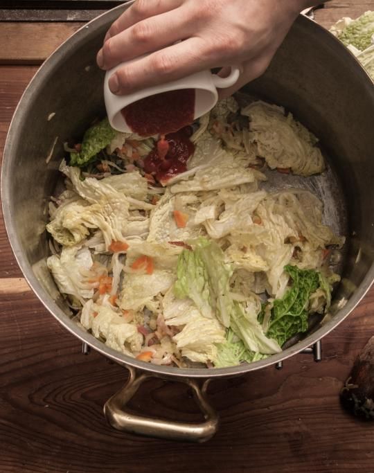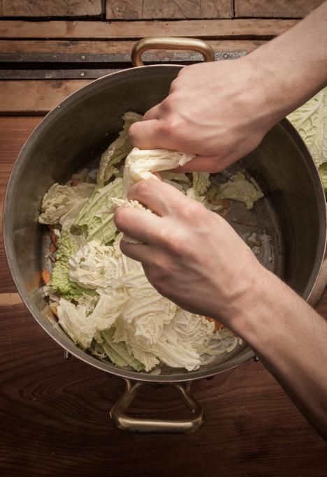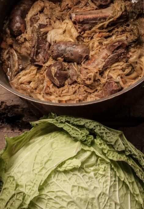 Desumiamo che una delle caratteristiche salienti della cassoeula lombarda sia la presenza costante delle verze, che sia la versione moderna di Carlo Cracco con il musetto di manzo, oppure quella del brianzolo Luciano Tona con l’orata e la cotenna di maiale. Ed è proprio la verza uno degli ingredienti più importanti dell’inverno, ma quella che ha preso il gelo, perché la pianta con la prima brina limita la concentrazione di acqua nelle foglie risultando più dolce. Per non parlare della sua valenza simbolica. Le foglie centrali venivano assimilate al sesso femminile, mentre il fusto (caulis in latino) al membro maschile, ed ecco la credenza che i bambini nascessero sotto i cavoli e che le contadine che si occupavano della raccolta venissero chiamate «levatrici». Questioni di gusto storico che ci fanno riflettere sul cibo disquisendo a lungo, al punto di smettere di mangiare per non smettere di parlare. Sennonché è proprio grazie all’educazione di qualcheduno che, presa la briga di alzarsi in piedi, fa roteare il mestolo (la cazzuola appunto) ammonendo il chiacchierone di turno e riponendo l’attenzione sulla sacralità del momento: «Tâs e magna la casœûla!».