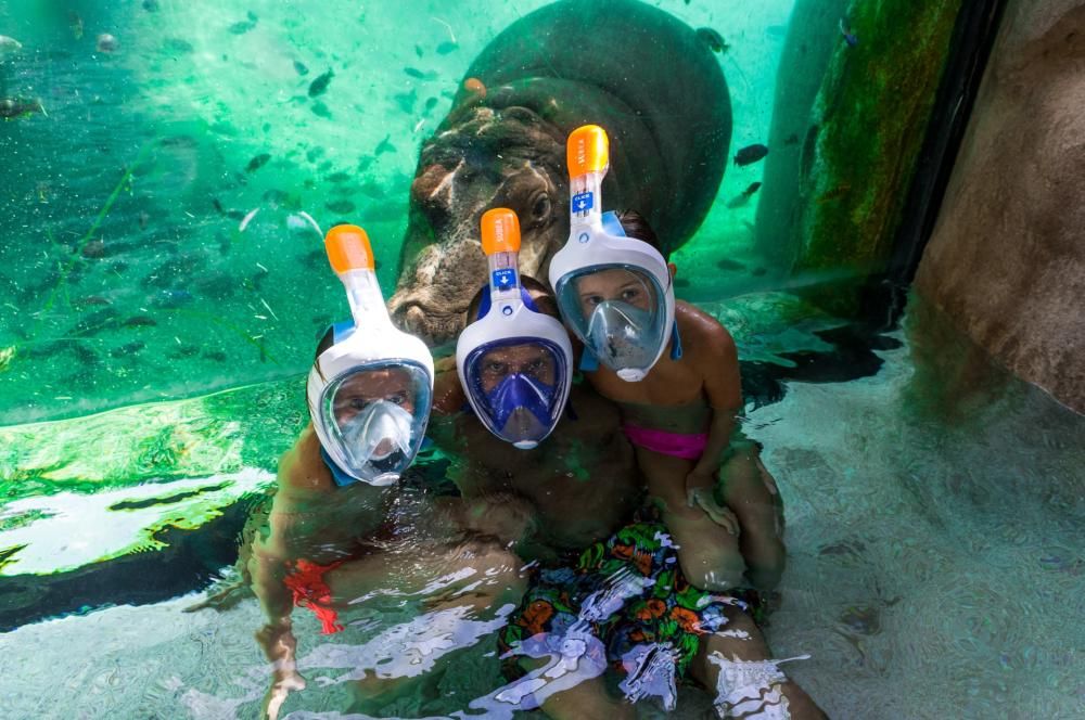 Hippo Rapid, le rapide dell’ippopotamo: si tratta di grande piscina (1000 mq). Qui, dolci correnti conducono il visitatore sotto la grotta degli ippopotami, dove ammirare, separati da una vetrata, la coppia di esemplari del parco mentre gioca tra i variopinti pesci tropicali. Seguendo le rapide, si arriva poi al fianco della vasca dedicata alle razze.