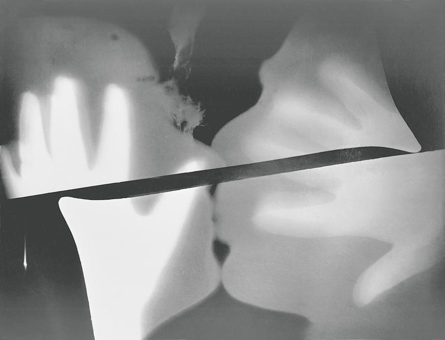 Man Ray (Philadelphia, 1890 – Parigi, 1976) è stato una figura centrale nelle avanguardie del XX secolo. Nato Emmanuel Radnitsky da una famiglia ebrea di origini russe, adottò lo pseudonimo “Man Ray” – unione di “Man” (uomo) e “Ray” (raggio di luce) – segnando così l’inizio di una vita e di una carriera profondamente votate alla sperimentazione artistica. Formatasi nell’ambiente vivace dell’arte americana di inizio secolo, la sua personalità artistica si sviluppò grazie al contatto con le avanguardie europee. Nel 1921 si trasferisce a Parigi, dove entra in relazione con il gruppo surrealista guidato da André Breton. È in questi anni che l’artista affina alcune delle sue tecniche più innovative, come la rayografia, procedimento che consiste nell’esporre oggetti direttamente su carta fotosensibile senza l’uso della macchina fotografica. Alla fine degli anni Venti, con la fotografa Lee Miller – nuova compagna e musa – sviluppa la tecnica della solarizzazione, in cui i contorni delle immagini assumono un’aura luminosa e spettrale, ottenuta attraverso un’esposizione parziale alla luce in fase di sviluppo.