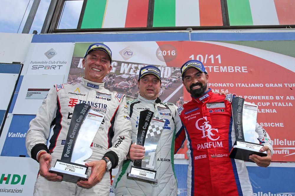Nella Michelin Cup Alex De Giacomi (Dinamic Motorsport) grazie al proprio successo di classe in Gara 3 ha scavalcato per un solo punto Marco Cassarà (Ghinzani Arco Motorsport – Centri Porsche di Roma), terzo nella corsa di oggi alle spalle di Livio Selva (Ebimotors – Centro Porsche Firenze).