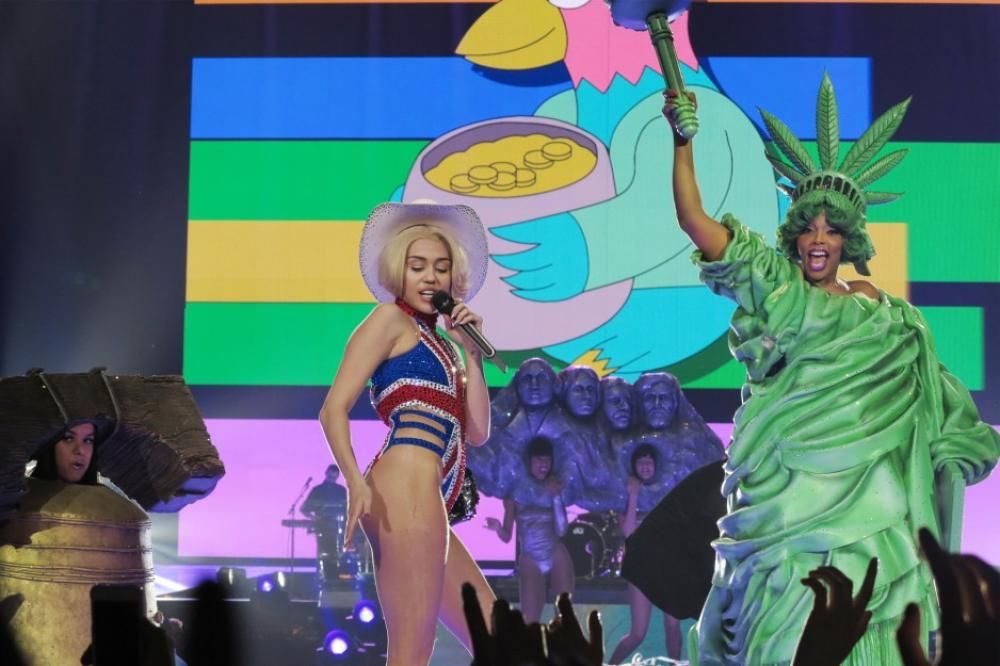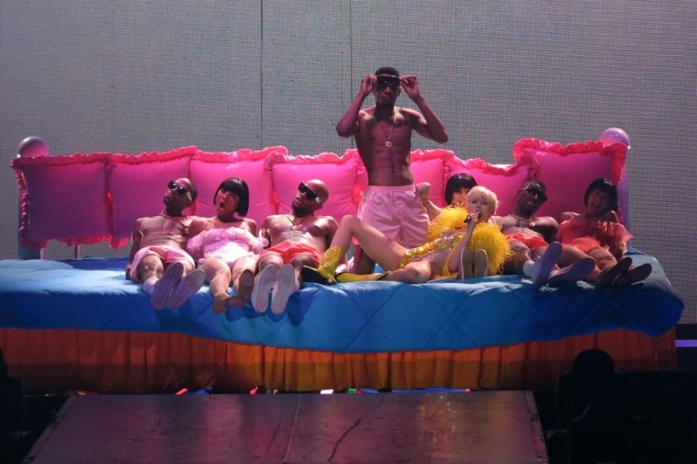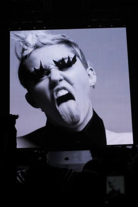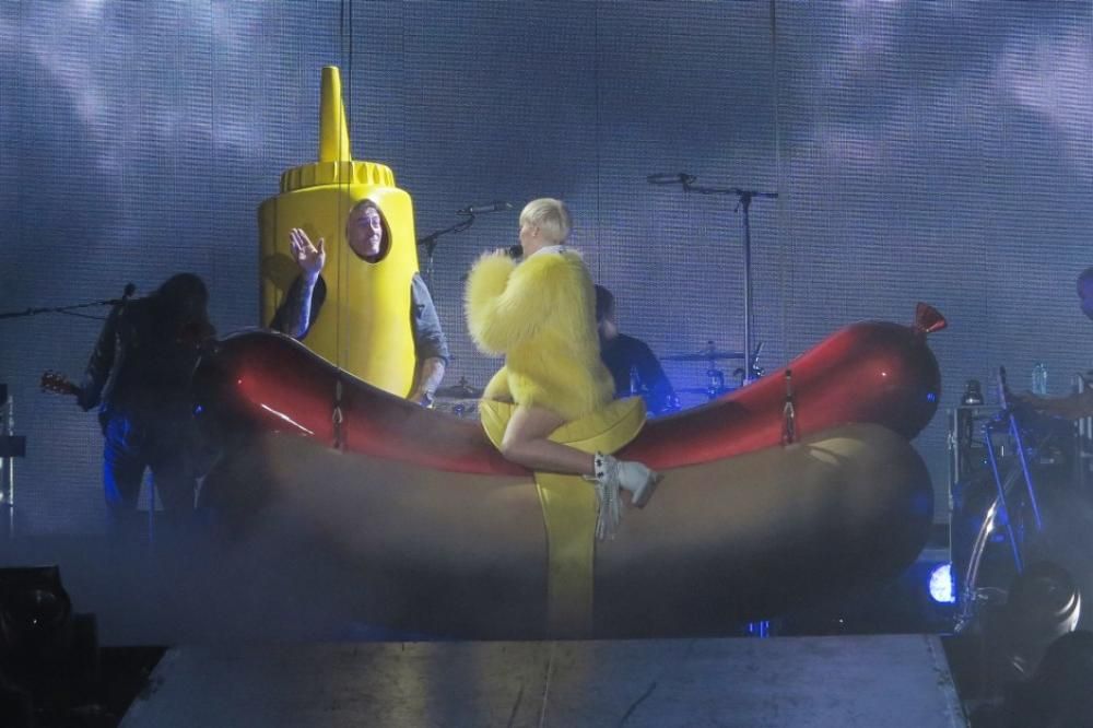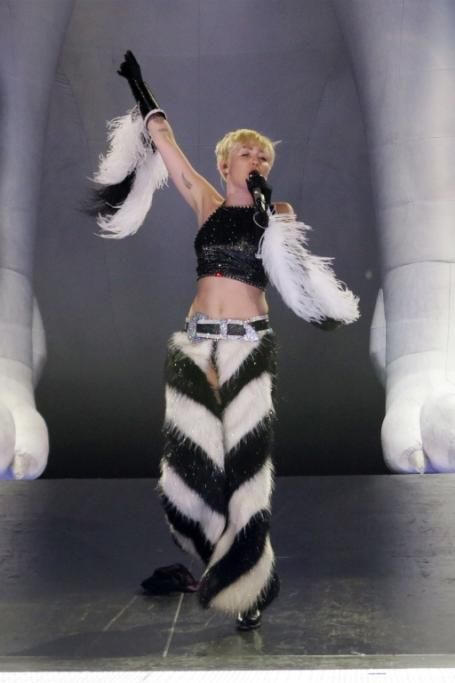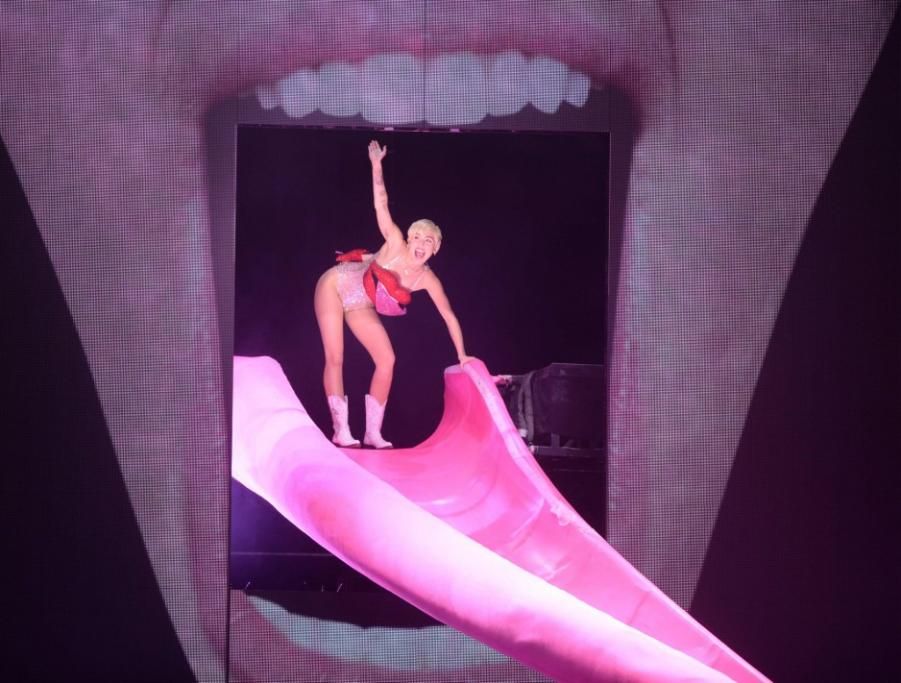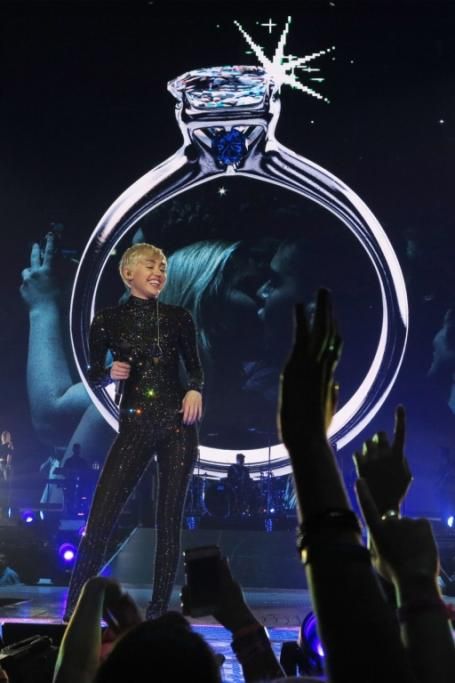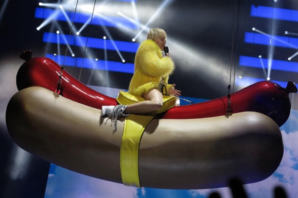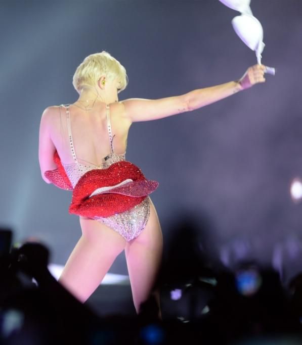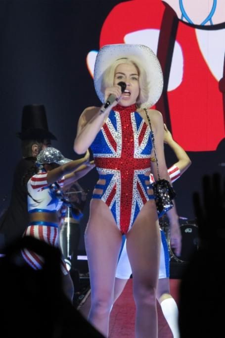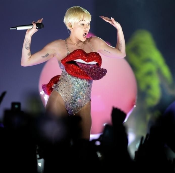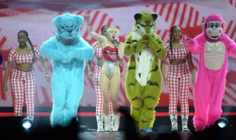 La giovane popstar non si risparmia per la tappa londinese del suo Bangerz tour. Pose provocanti, costumi a dir poco sopra le riche, wurstel giganti e peluche in colori fluo la fanno da padrone. Guarda le foto (Splash news)