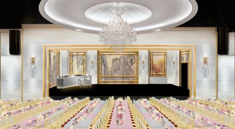 I circa 800 partecipanti attesi (800€ a testa, bevande escluse) siederanno ai tavoli decorati a tema. Tovaglie di raso rosa e grigie e al centro bouquet di rose di varie gradazioni.