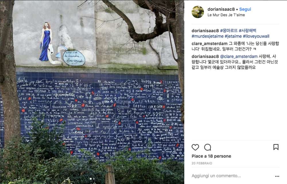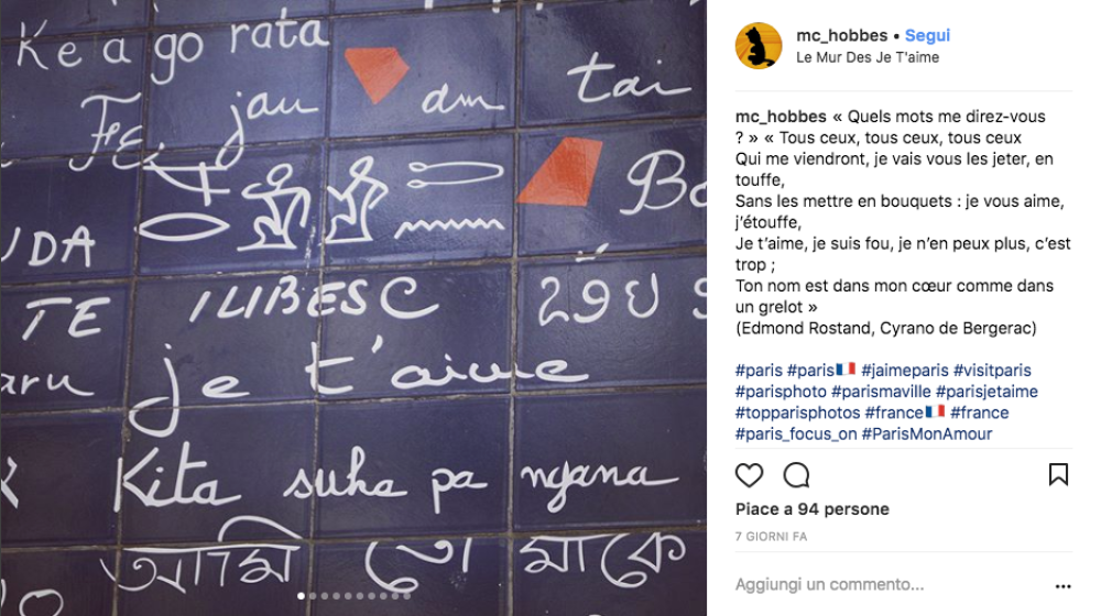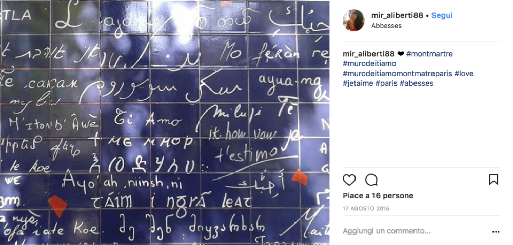 Il “Muro dei ti amo”, o «le mur des je t’aime», è una parete di 10 metri di larghezza e 4 di altezza, situata a Montmartre, Parigi, non a caso la città degli innamorati.